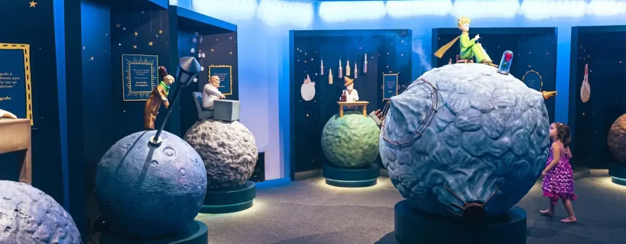 As salas apresentam referências da obra, como a lição sobre o chapéu, o elefante e a jiboia. No ambiente dos asteroides, os visitantes poderão interagir com cada planeta visitado pelo protagonista antes de sua chegada ao deserto – que também tem um espaço dedicado. Nele, há uma reprodução de um Breguet-14, um dos aviões utilizados pelo autor ao longo de sua vida.