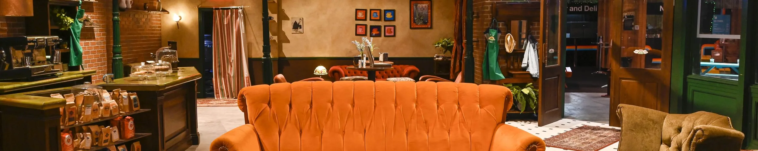 Atravesse a icônica porta roxa de Rachel e Mônica, relaxe nas poltronas reclináveis de Chandler e Joey e, claro, tire fotos no famoso sofá laranja do Central Perk.